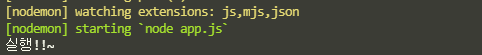ctrl + c를 눌러서 서버를 끈 후 다시 node app.js를 입력해봅시다.