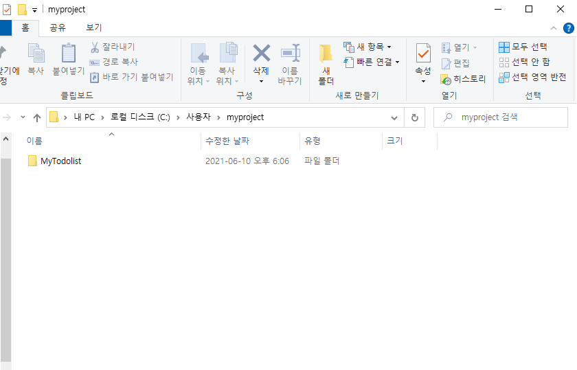 2. 원하는 위치에 MyTodolist폴더를 생성합니다.