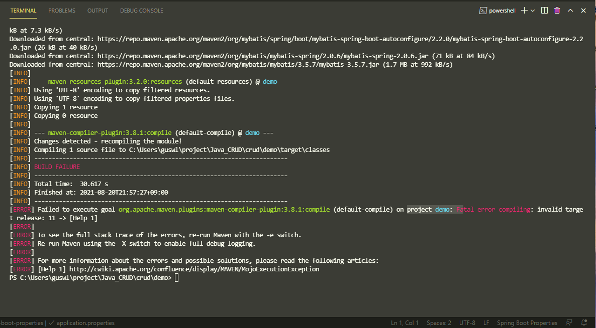 그래도 에러가 날거에요 pom.xml에 mysql을 추가해줘야하기 때문입니다.