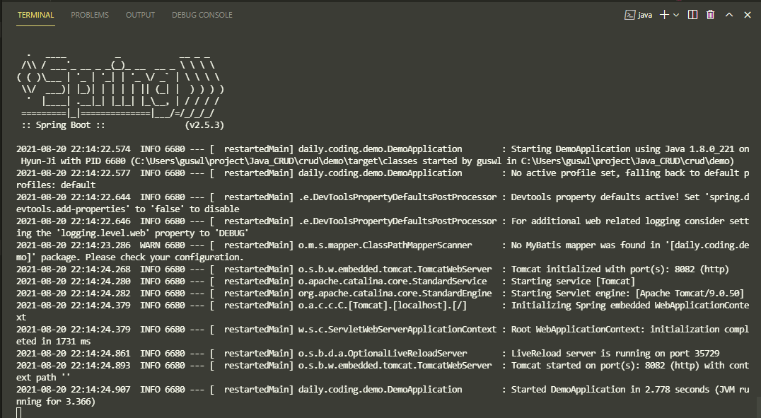 | [Java] 01. 시작하기(Spring Boot With VSCode) (0) | 2021.08.18 |