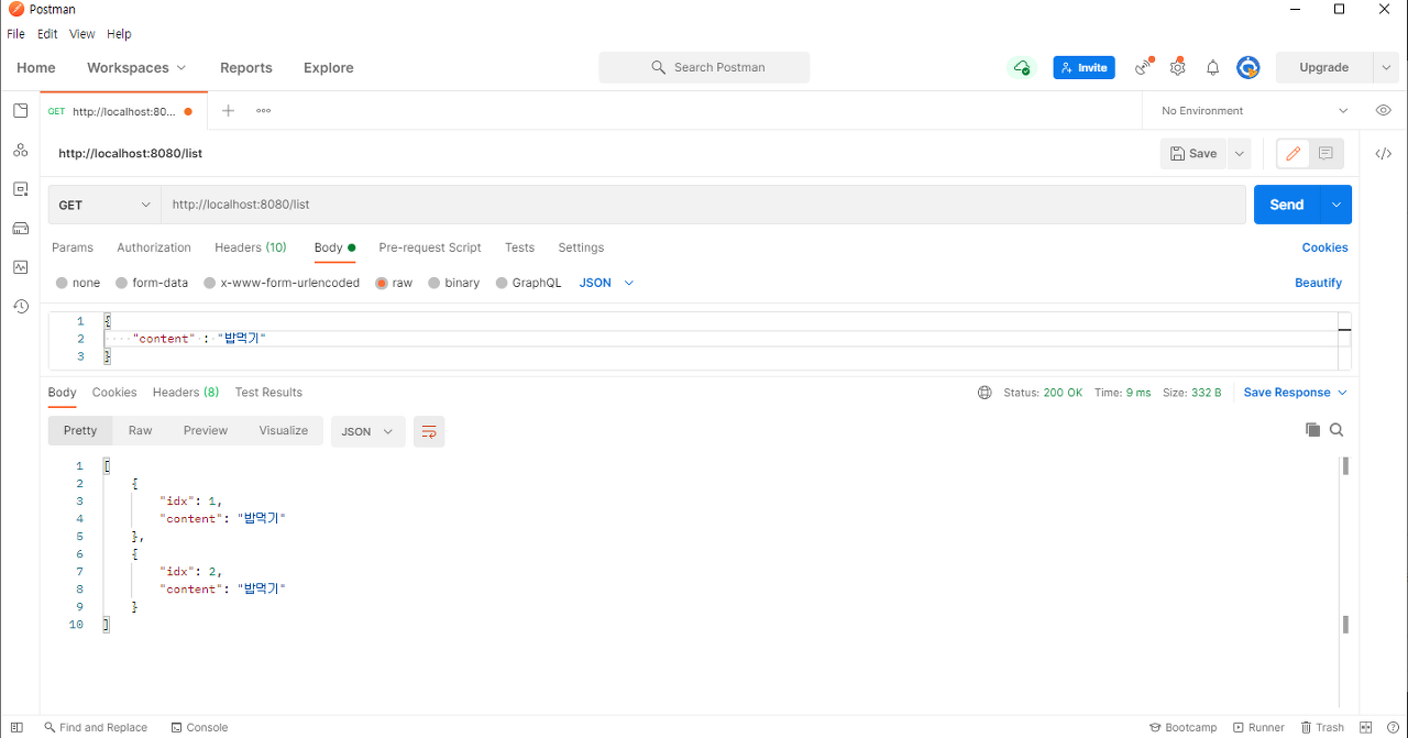 통신이 잘 이루어지는지 확인하기 위해 postman을 사용해보겠습니다.