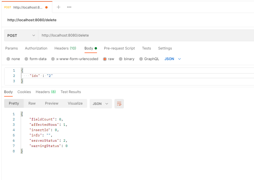 지우고 싶은 내용에 해당되는 고유 번호 idx값을 body를 통해 전송해줍니다.