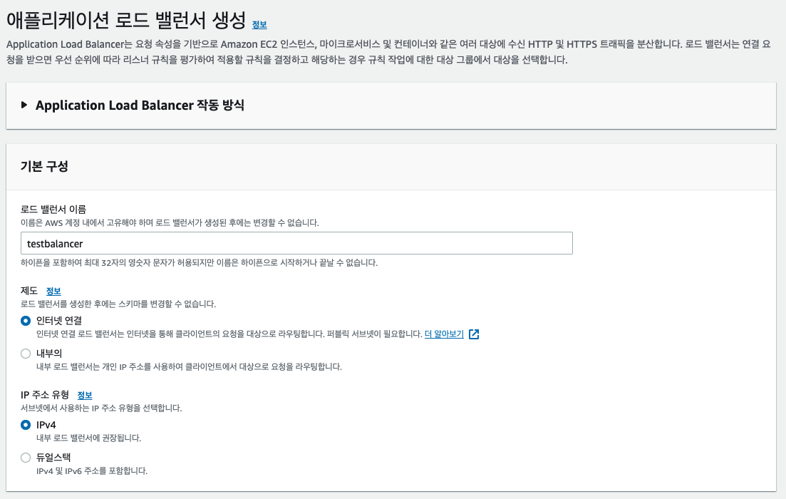 저는 Application Load Balancer 옵션으로 진행하겠습니다. 상황에 맞게 선택해서 진행하시면 됩니다.