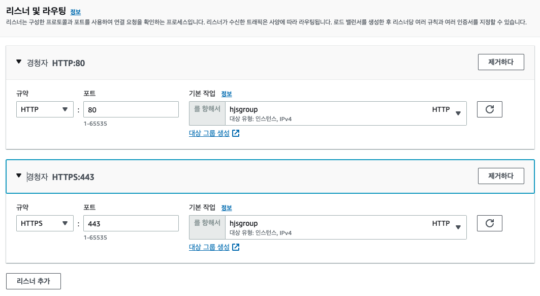 5. 리스너 및 라우팅 옵션 설정을 위해 대상그룹생성 페이지를 키고, 아래와 같은 설정으로 대상 그룹을 생성합니다.